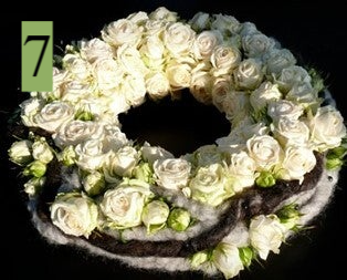 4. rouwkrans krans, in wit of roos, 35 cm diameter - 49,5 Euro