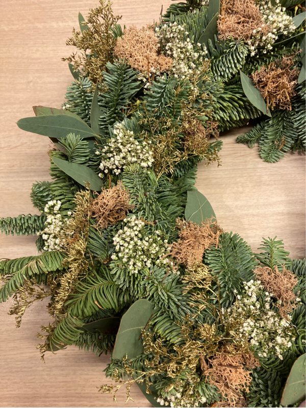 nobilis krans gecombineerd met extra groen en natuurlijke accenten in de volgende kleuren